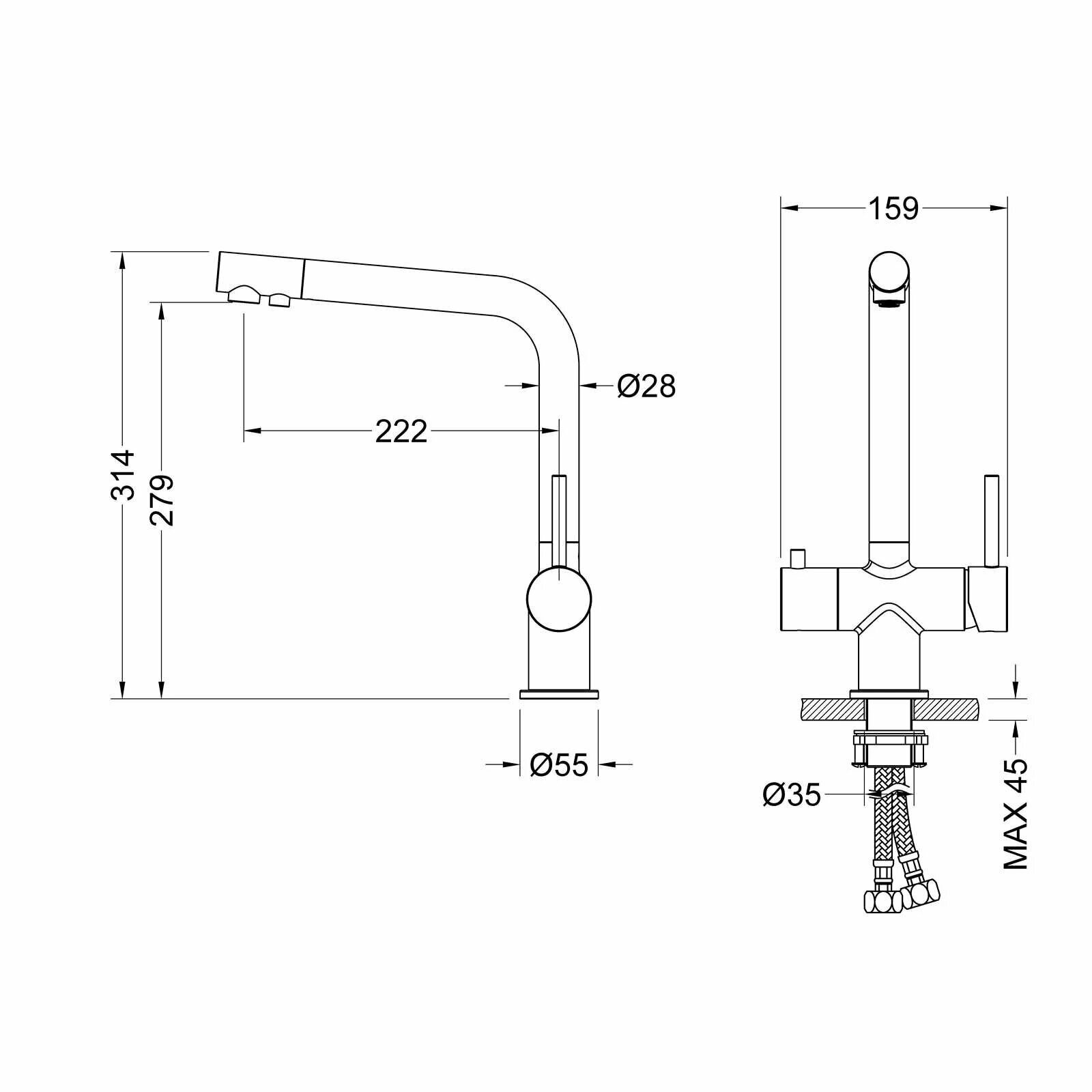 | Длина излива | 233 мм |