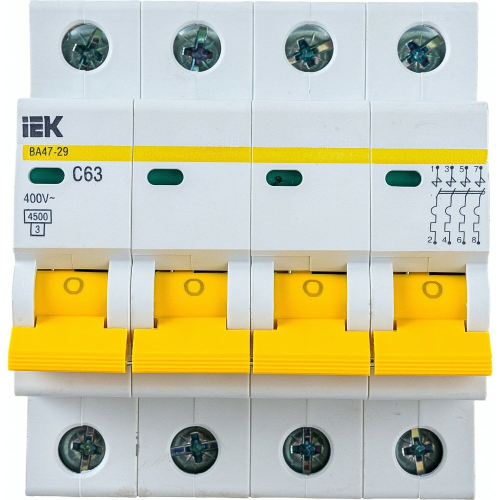 СохранитьАвтоматический выключатель Iek ВА47-29 4Р 63А 4,5кА х-ка С, MVA20-4-063-C интересное:
