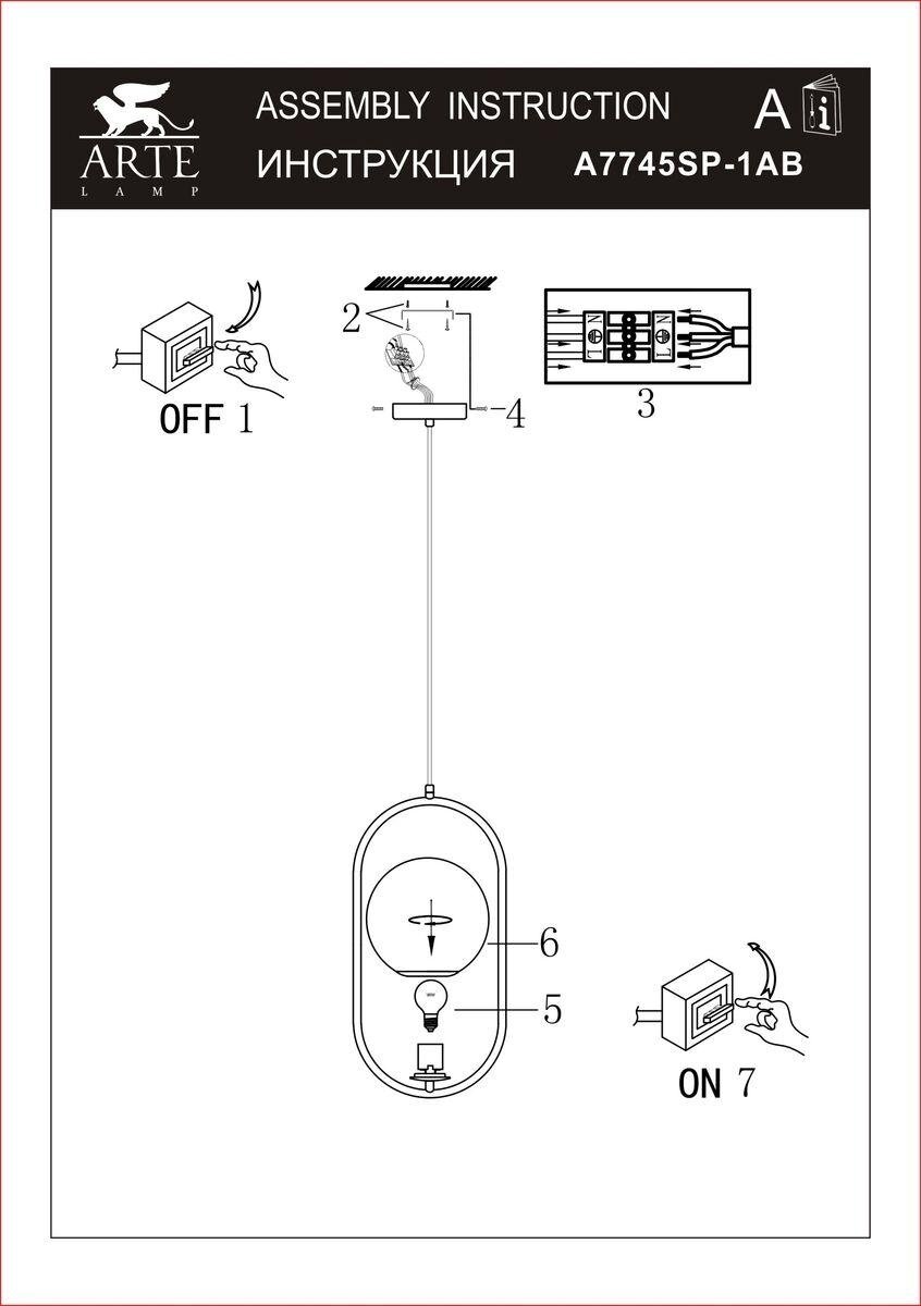 ARTE LAMP светильник подвесной Arte Lamp A7745SP-1AB