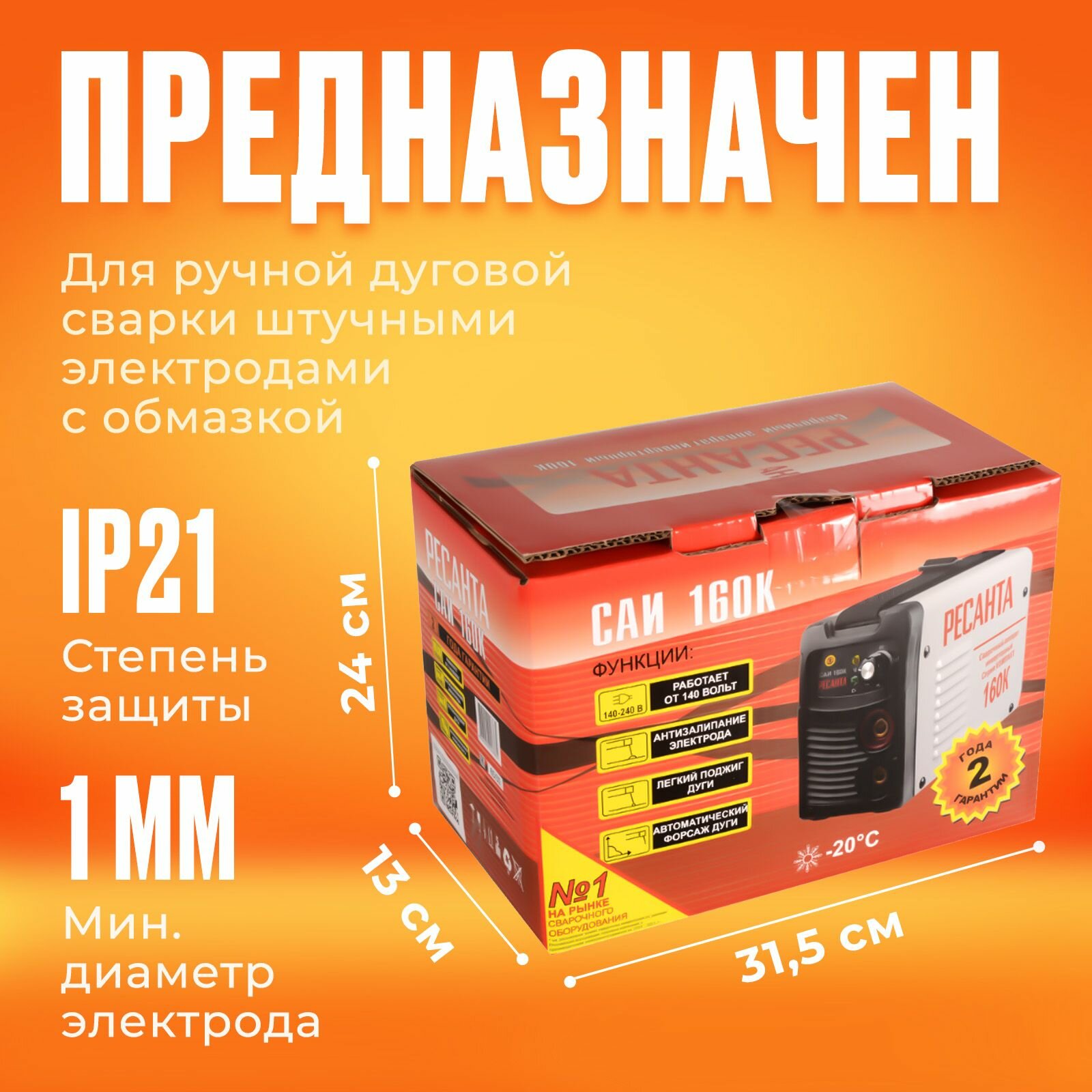 Ниже Вы можете прочитать отзывы на Сварочный аппарат инверторный Ресанта САИ-160К (ММА, 160 А, ПВ - 70%), ознакомится с подробными характеристиками, посмотреть интересные обзоры и фотографии на Сварочный аппарат инверторный Ресанта САИ-160К (ММА, 160 А, ПВ - 70%).