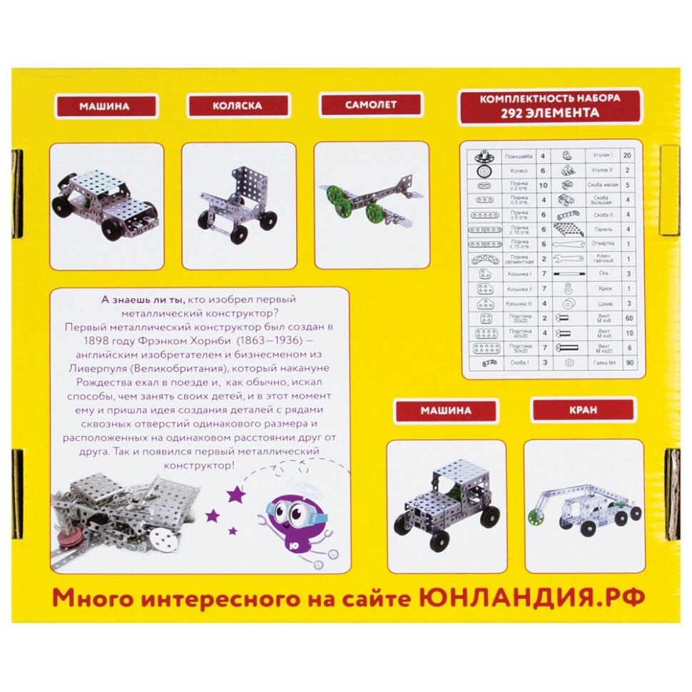 Металлический конструктор Юнландия "Для уроков труда №3", 292 элемента (104681)