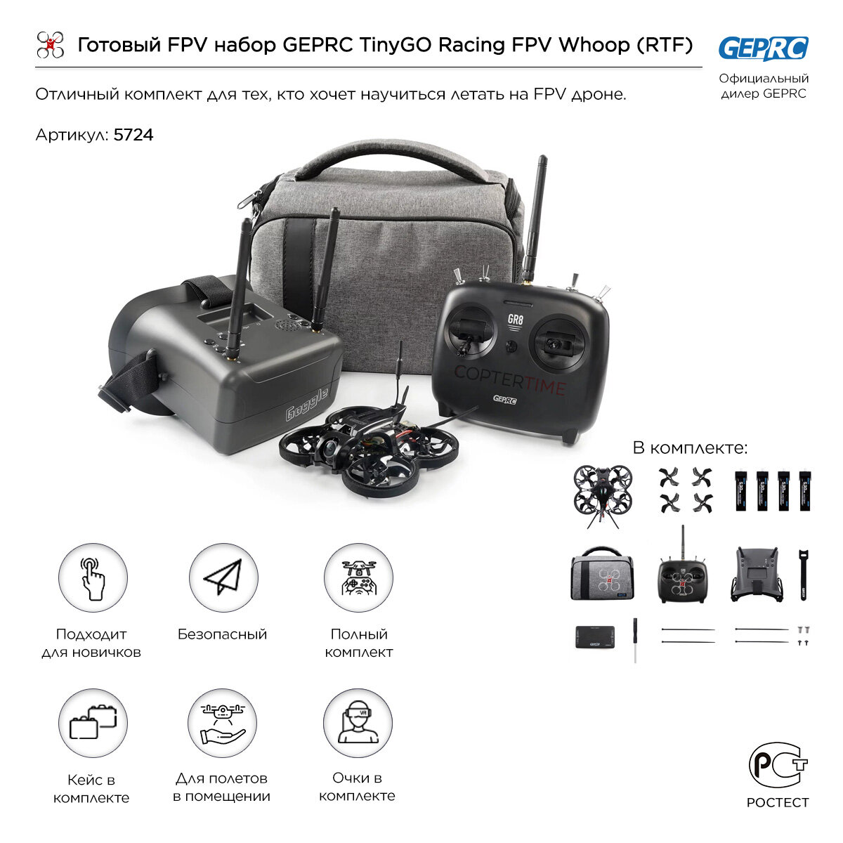 Готовый FPV набор GEPRC TinyGO Racing FPV Whoop (RTF) интересное: