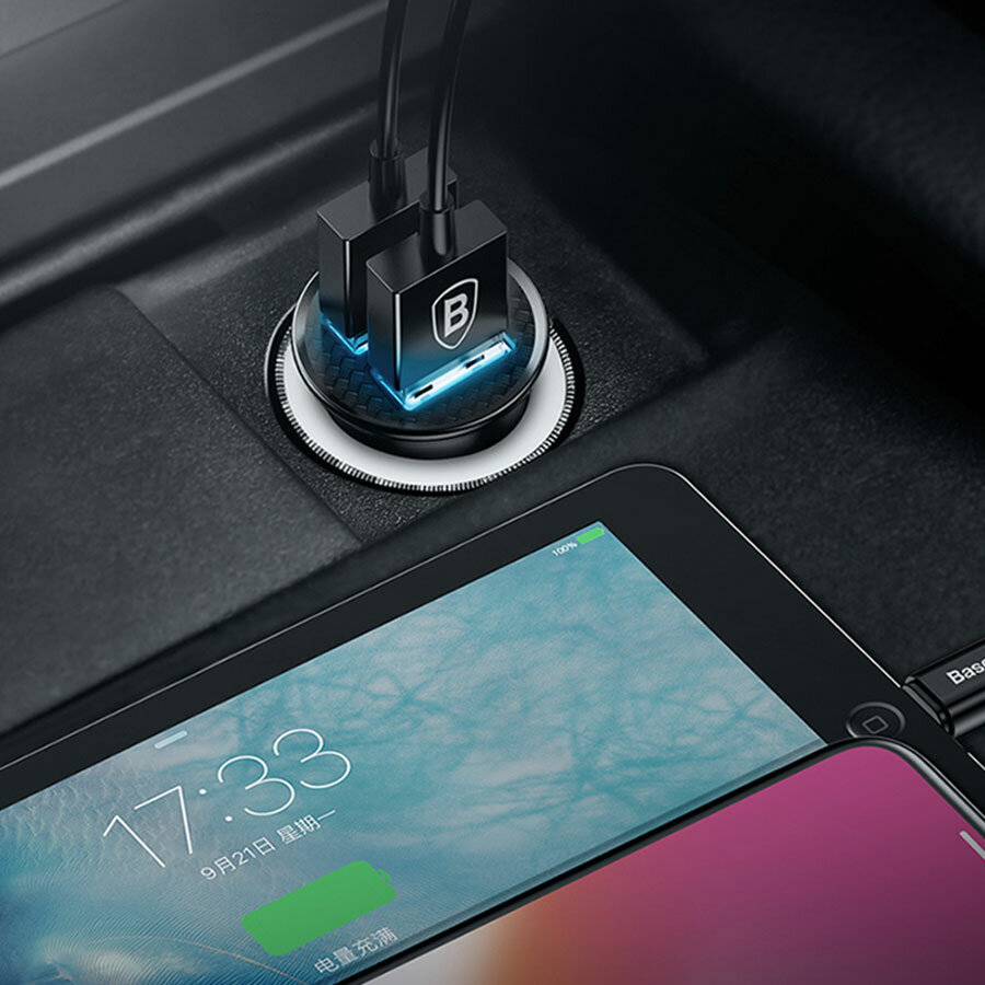 Автомобильное зарядное устройство BASEUS Circular Plastic, 2xUSB, 5A, 30W, черный интересное: