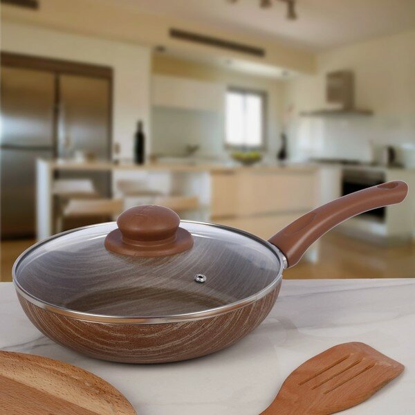 Сковорода глубокая Kantry, d=22 см, стеклянная крышка, пластиковая ручка, антипригарное покрытие, цвет коричневый