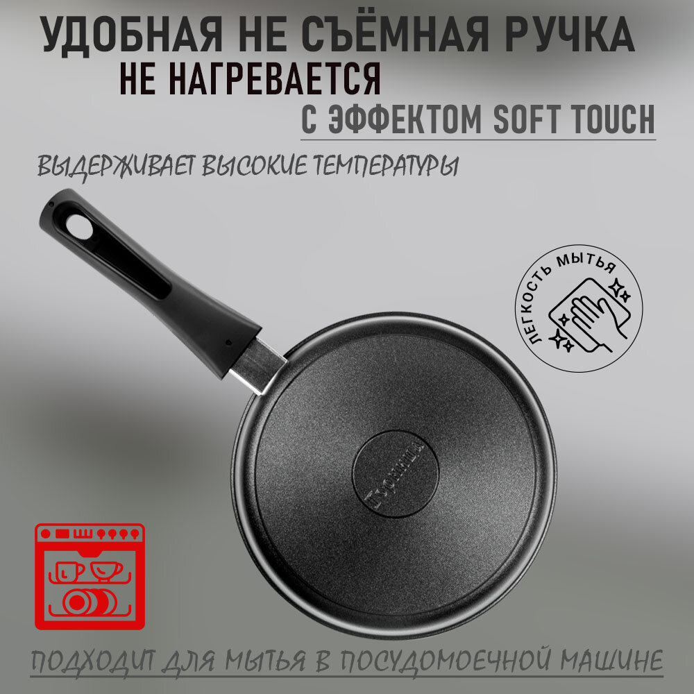 Сковорода 24 см, несъемная ручка (софт тач), без крышки, серия Классик Горница интересное: