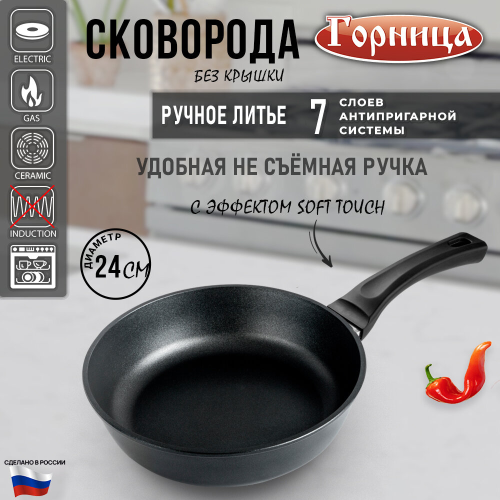 Купить Сковорода 24 см, несъемная ручка (софт тач), без крышки, серия Классик Горница