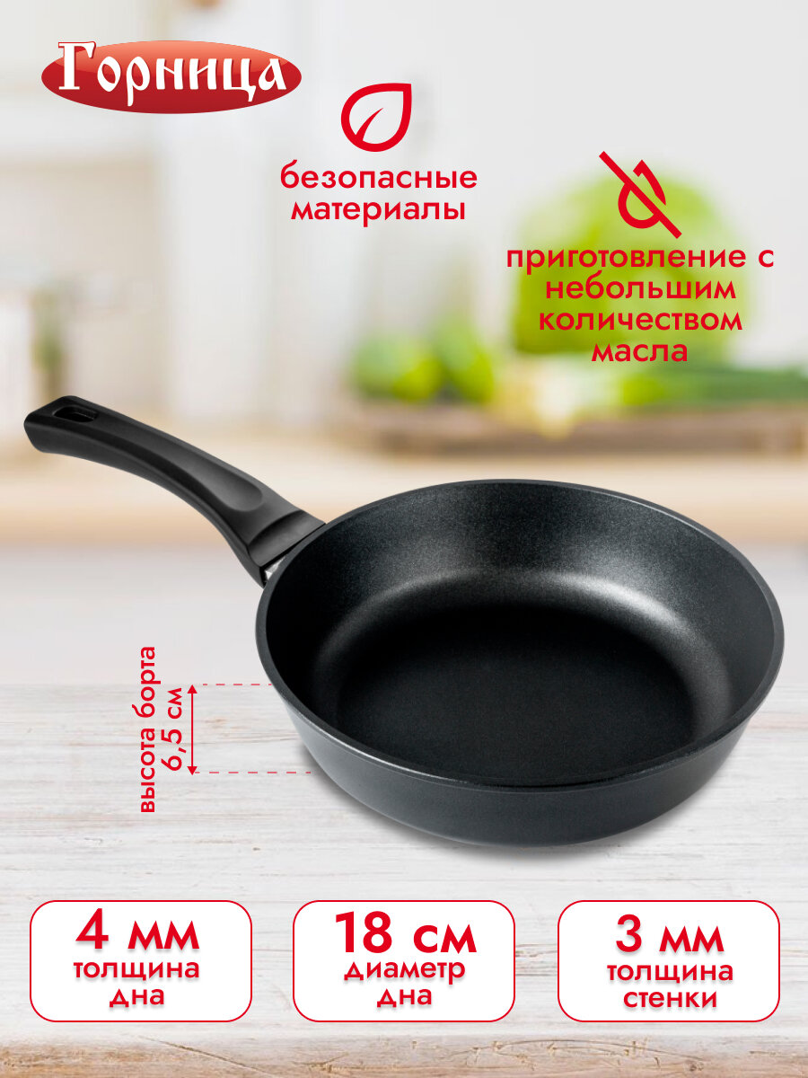 Сковорода Горница Классик, алюминий, антипригарное покрытие PFLUON, черная, диаметр 24см