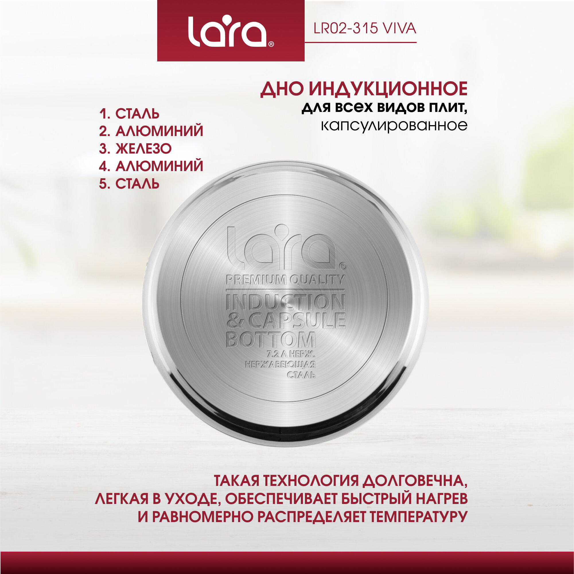 Кастрюля Lara Viva LR02-311 2.2л нерж,индук,ст.к