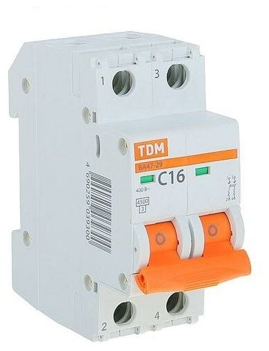 Автоматический выключатель TDM Electric ВА47-29 2P C16 А 4.5 кА SQ0206-0093