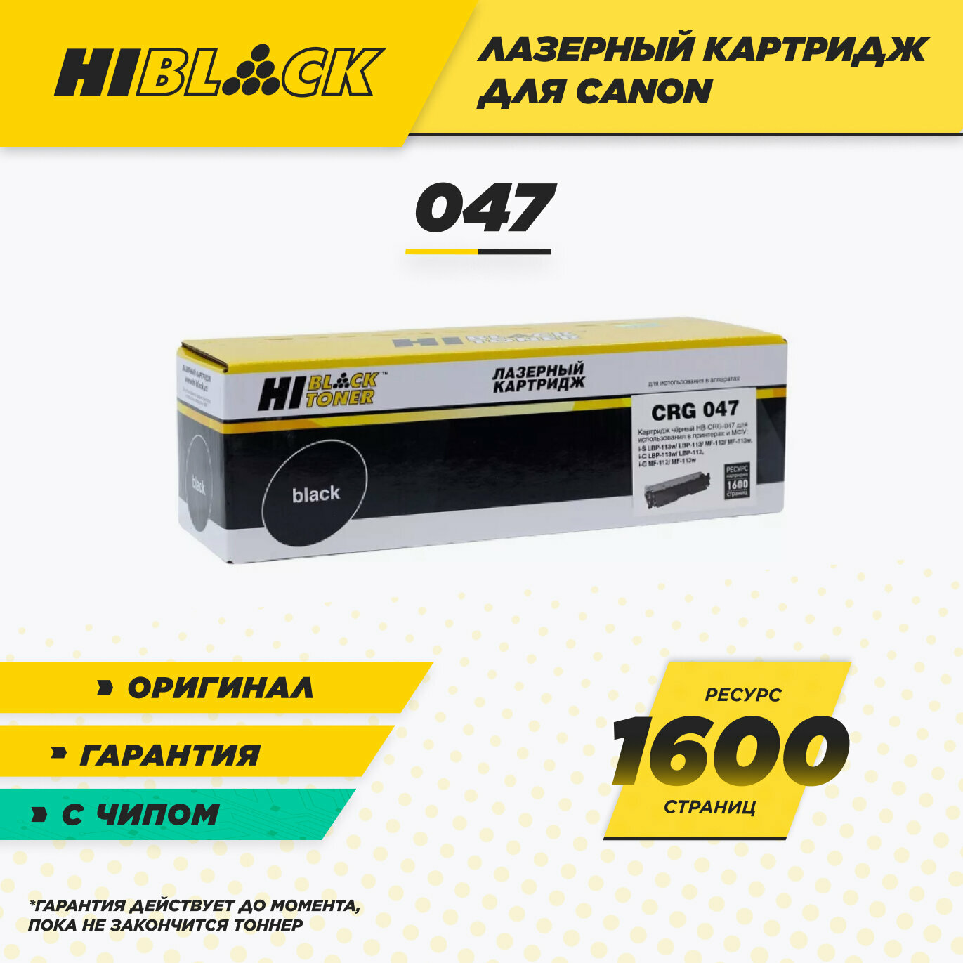 Купить Тонер-картридж Hi-Black №047 для Canon i-SENSYS LBP112w/113w/MF112/113w, 1,6K, черный, 1600 страниц