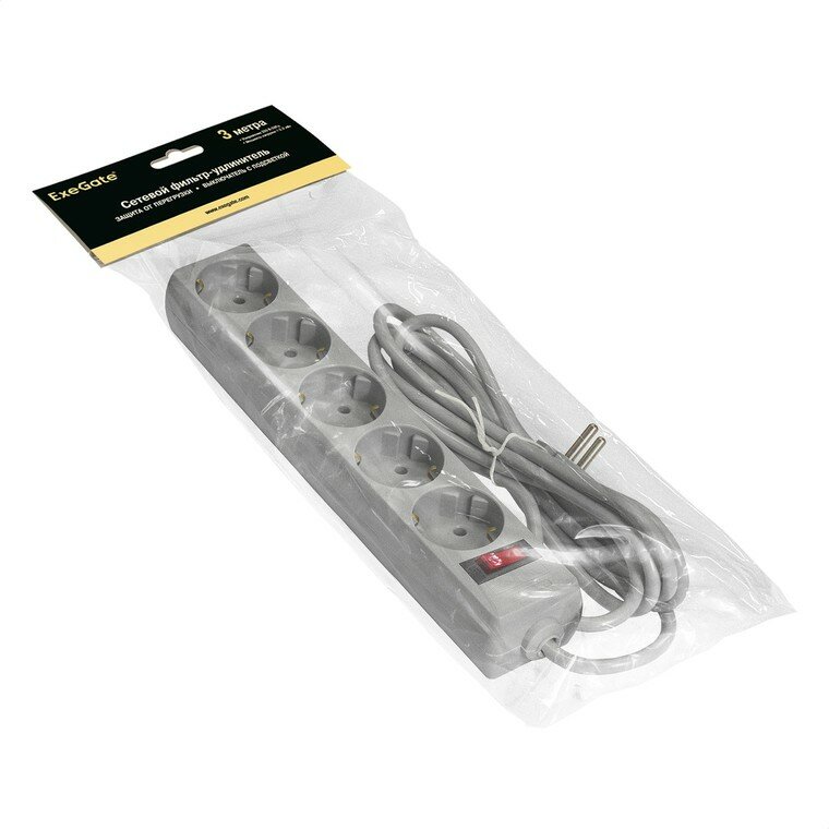 Купить Сетевой фильтр ExeGate EX221186RUS SP-5-3G (5 розеток, 3м, евровилка, серый)