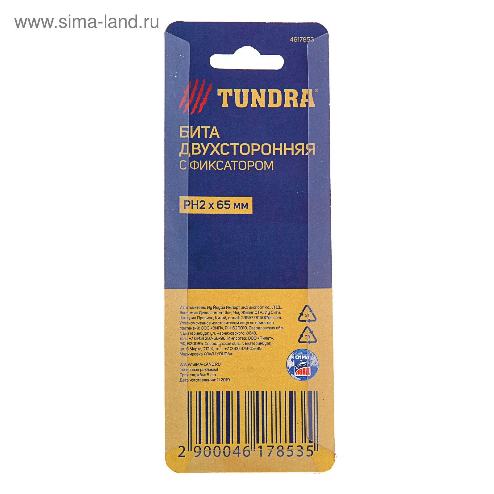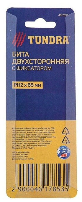 Бита двухсторонняя тундра, сталь S2, круглый магнитный фиксатор, PH2 х 65 мм./В упаковке шт: 1