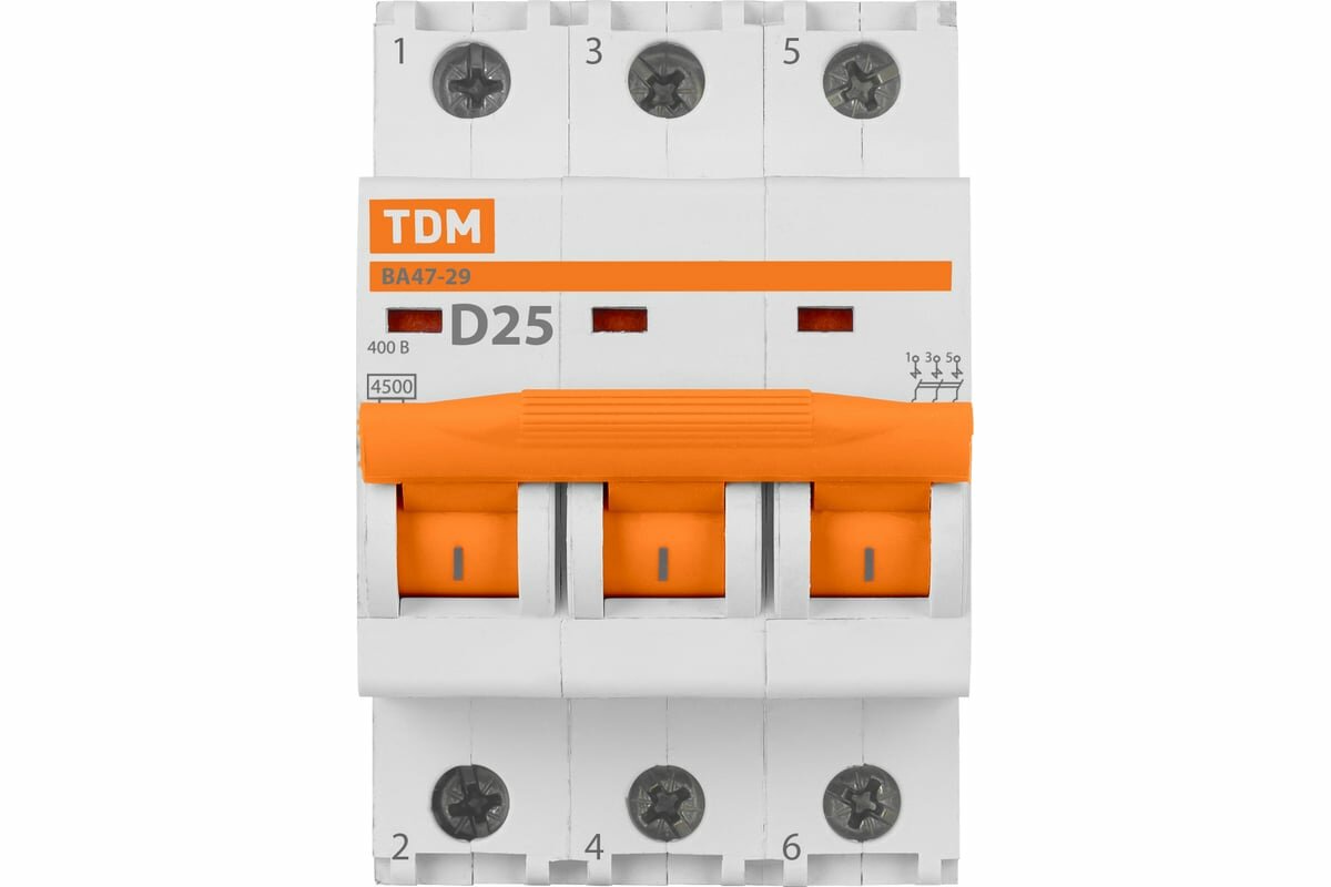 Автоматический выключатель ВА47-29 3Р 25А 4,5кА х-ка D, TDM SQ0206-0175 (1 шт.)