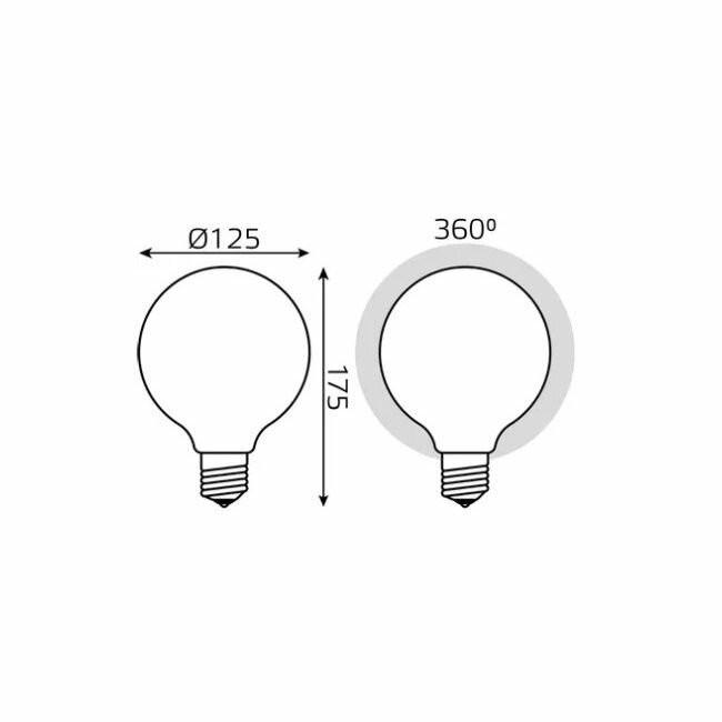 Лампа Gauss Filament G125 10W 1070lm 3000К Е27 LED 187202110-D