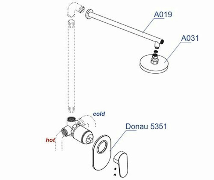 Комплект для душа WasserKRAFT А12031 с верхней душевой насадкой