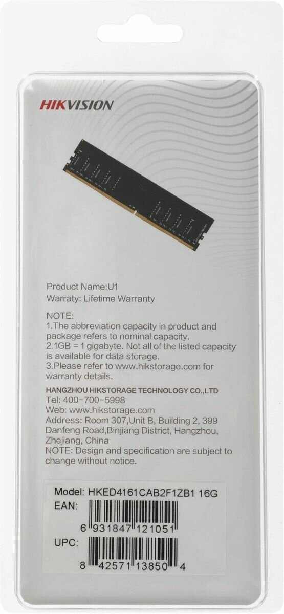 Модуль памяти Hikvision HKED4161CAB2F1ZB1/16G DDR4 - 16ГБ 3200, DIMM, Ret