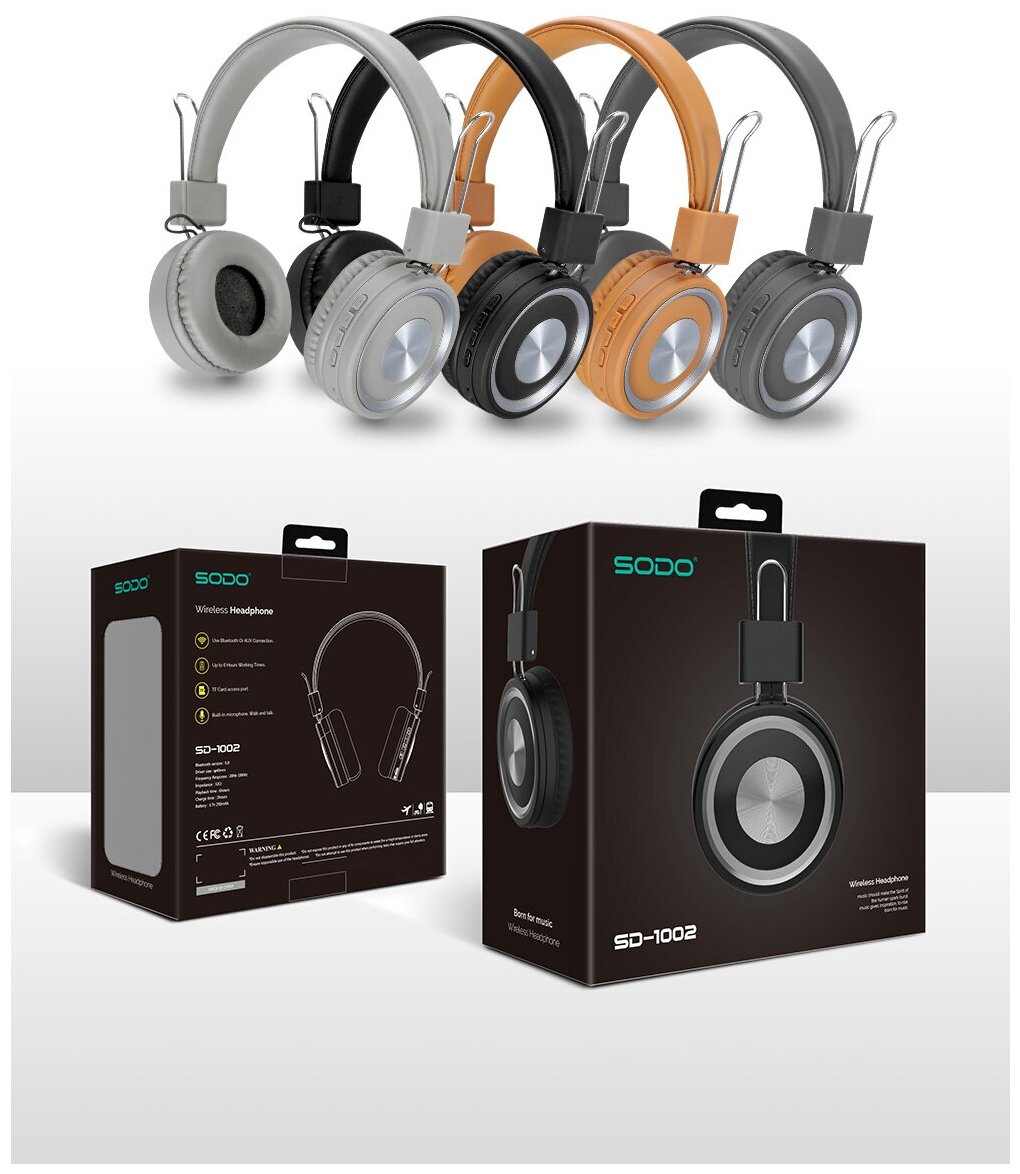 Ниже Вы можете прочитать отзывы на Беспроводные наушники накладные SODO SD-1002, Bluetooth + AUX, темно-серый, ознакомится с подробными характеристиками, посмотреть интересные обзоры и фотографии на Беспроводные наушники накладные SODO SD-1002, Bluetooth + AUX, темно-серый.