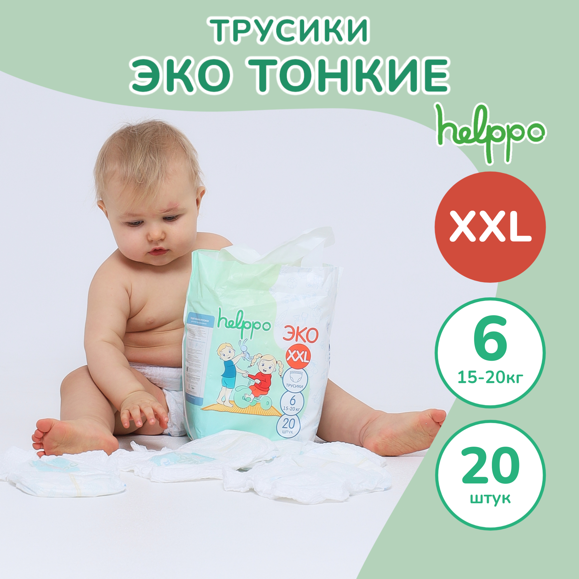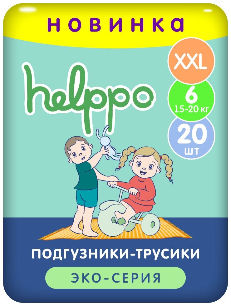 Подгузники трусики helppo, ЭКО, размер XXL (15-20 кг), 20 шт
