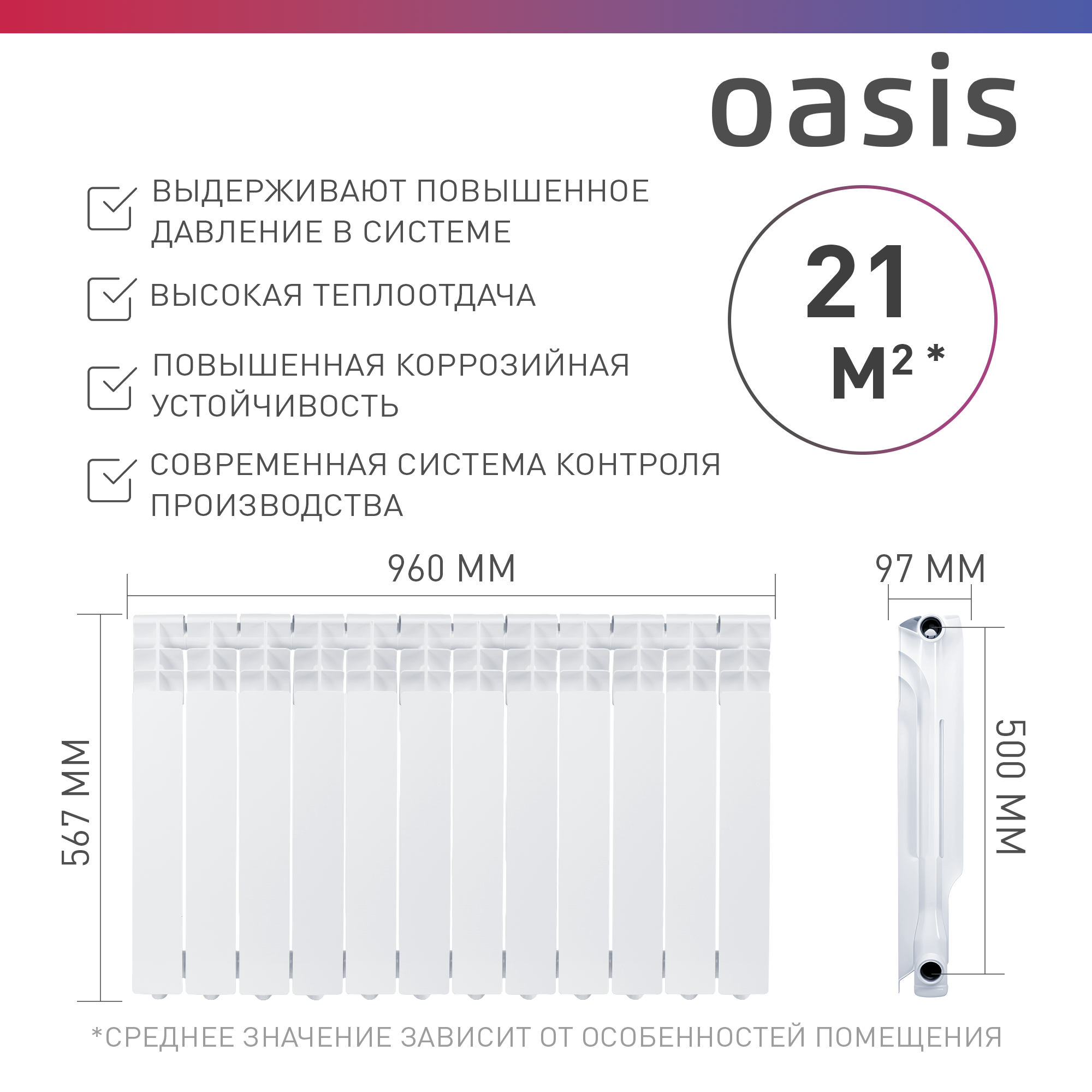 Oasis Алюминиевые радиаторы 500/80/4 4670004371299 .