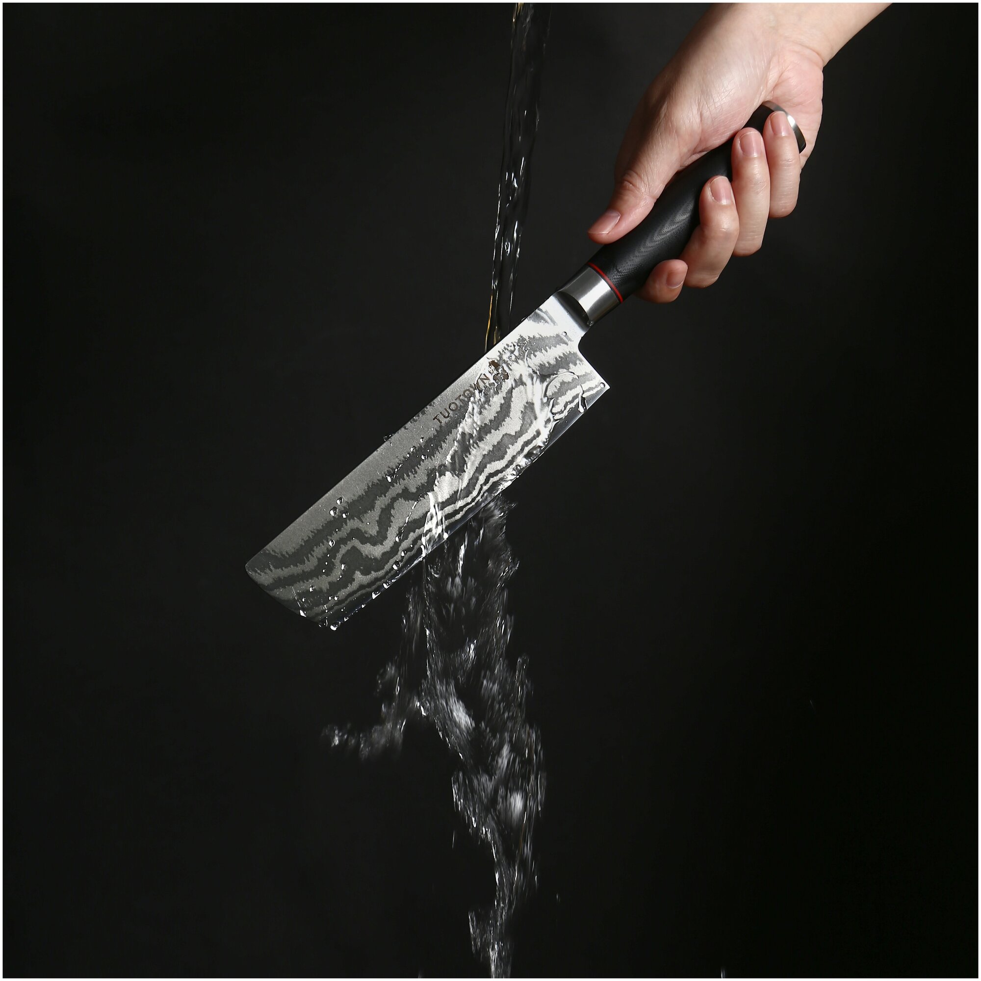 Поварской Накири TuoTown — Клинок 18см (ламинат VG10-Damascus), рукоять G10.