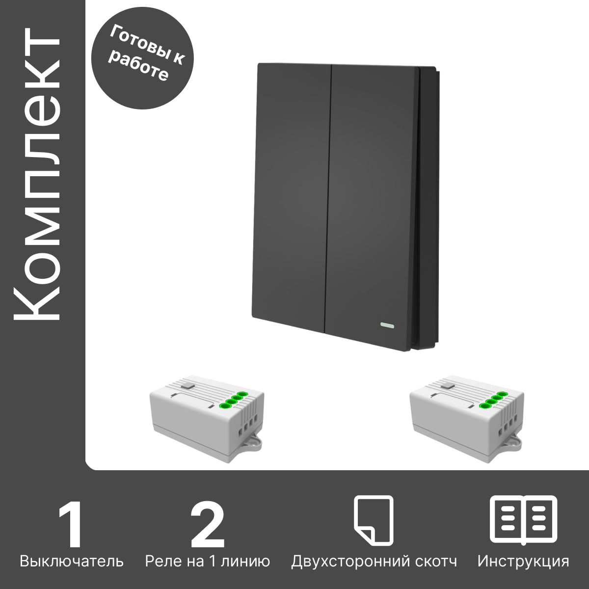 Купить Умный беспроводной выключатель GRITT Evolution 2кл. антрацит комплект: 1 выкл. IP67, 2 реле 1000Вт 433 + WiFi с управлением со смартфона, EV221220BLWF