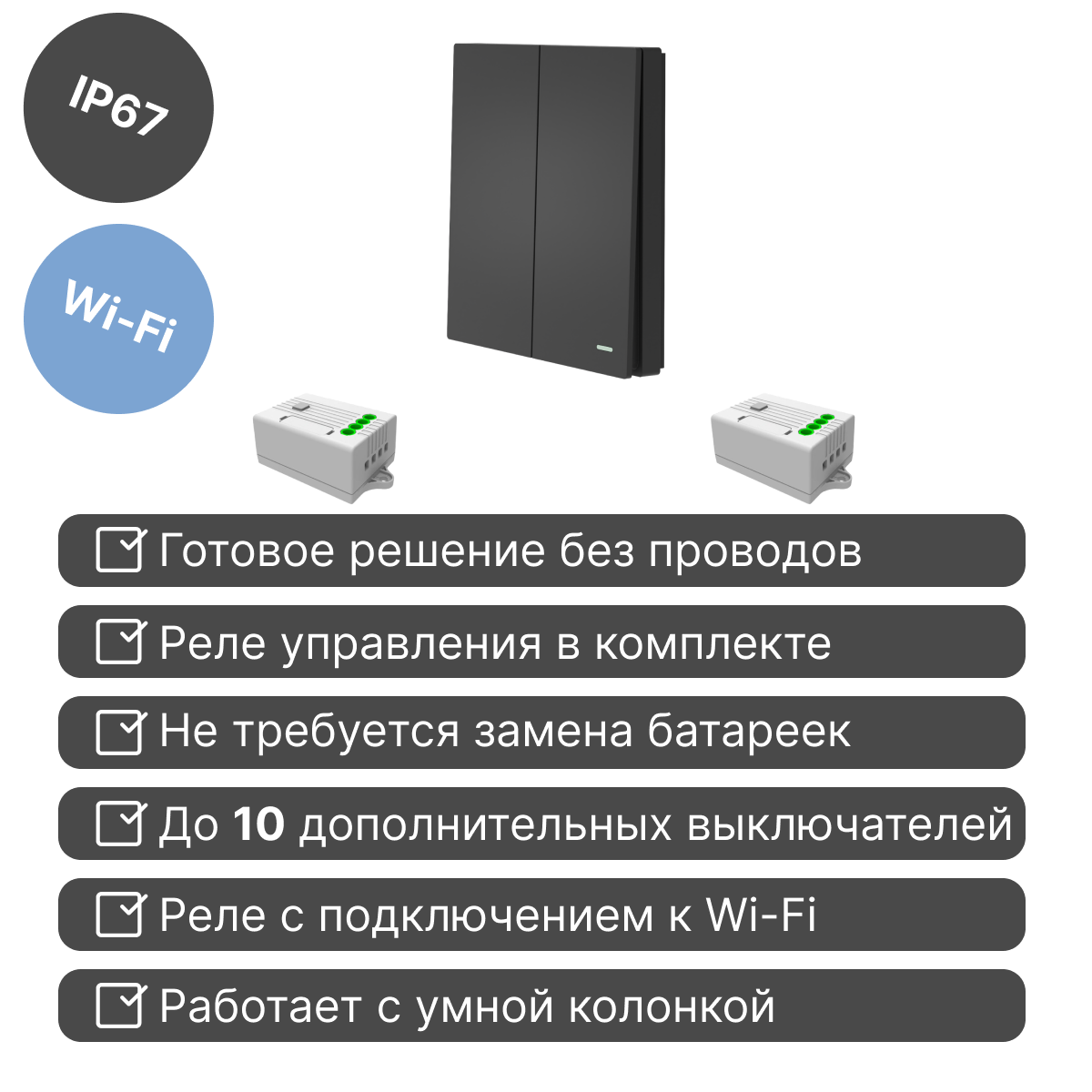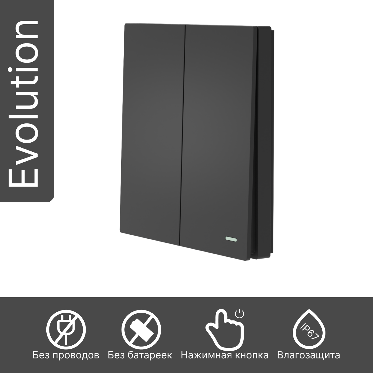 Умный беспроводной выключатель GRITT Evolution 2кл. графит комплект: 1 выкл. IP67, 2 реле 1000Вт 433 + WiFi с управлением со смартфона, EV221220GRWF
