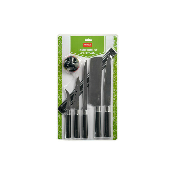 Набор ножей Самурай, Bradex (товары для дома, 5 ножей, ножеточка, магнитный держатель, TK 0570)