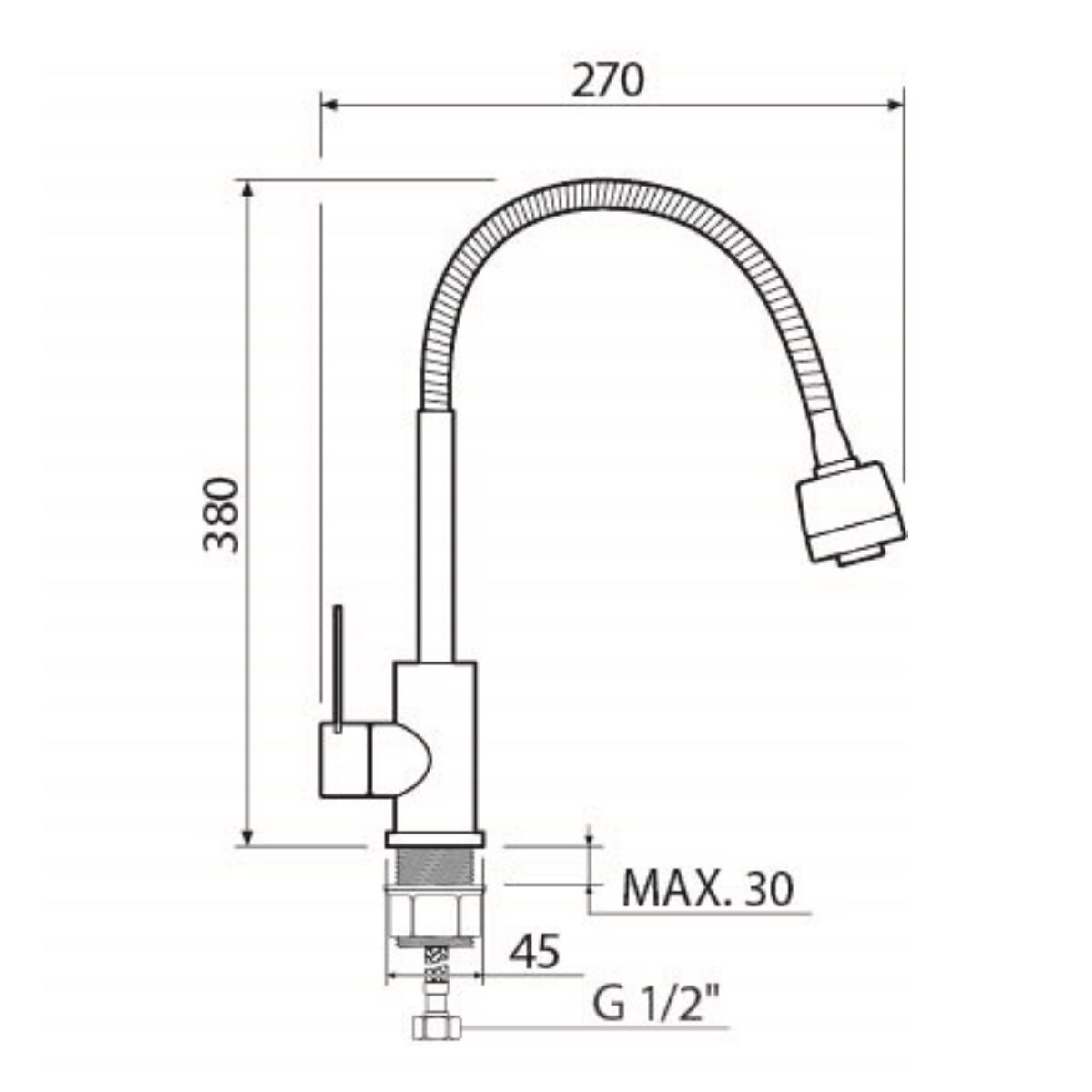 Смеситель для кухни с гибким изливом РМС SUS124BL-016F нержавеющая сталь