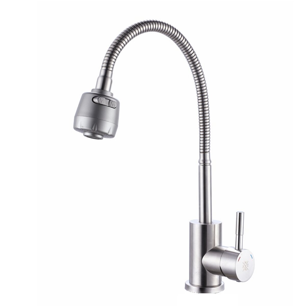 СохранитьСмеситель для кухни, РМС SUS124-016F, нержавеющая сталь, гибкий излив, насадка двухрежимная, однорычажный интересное: