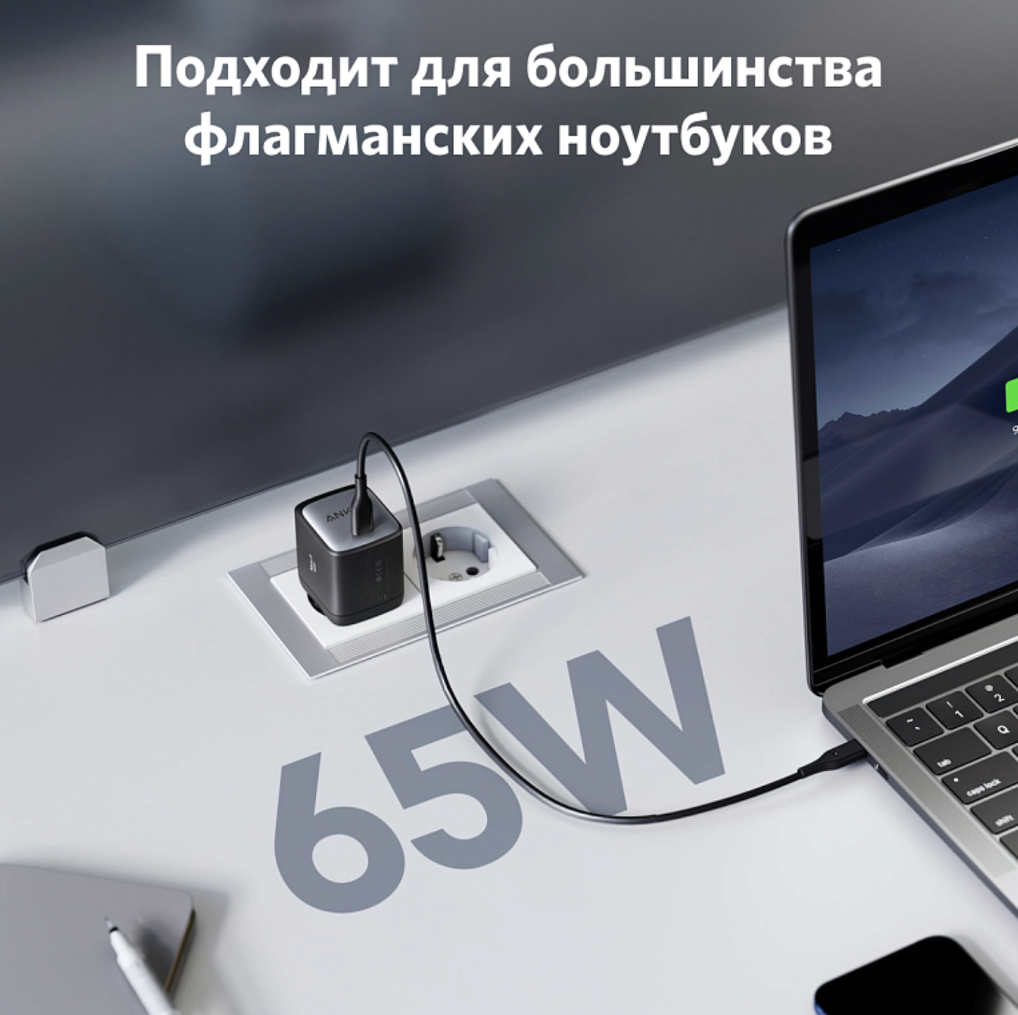 СохранитьЗарядное устройство Anker PowerPort Nano II GaN 65Вт USB-C для iPhone 15/14/13/12 серии и других смартфонов / ноутбуков (A2663), черный интересное: