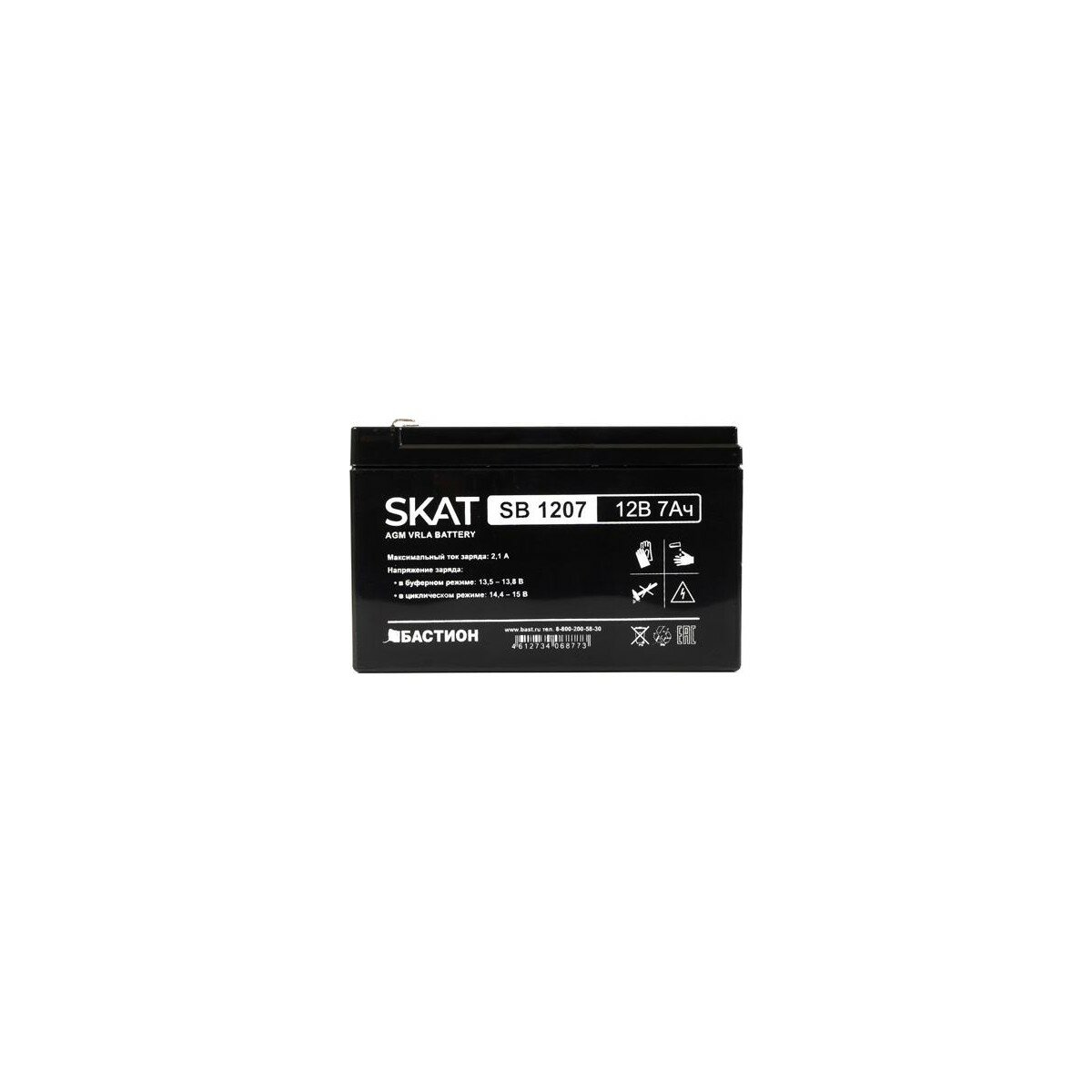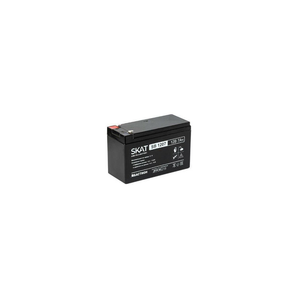 Бастион SKAT SB 1207, 12В, 7Ач, максимальный ток заряда 2,1 А Тип клеммы — F1 нож,гарантия - 18 месяцев 2533