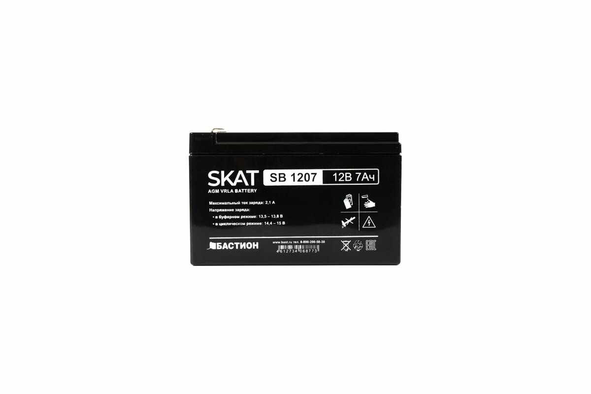 Бастион Скат SKAT SB 1207, 12В, 7Ач, максимальный ток заряда 2,1 А Тип клеммы — F1 нож,гарантия - 18 месяцев 2533