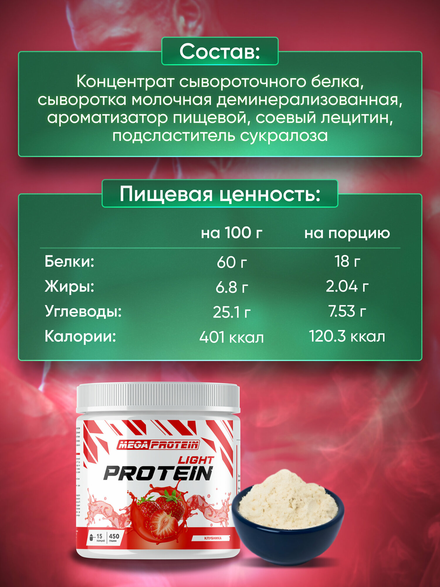 Протеин сывороточный Megaprotein WHEY PROTEIN LIGHT, Клубника, 450 грамм