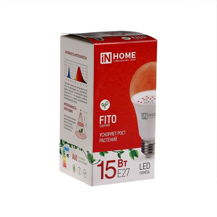 Лампа светодиодная, 15 Вт, Е 27, 230 В, полный спектр, LED-A60-FITO, IN HOME