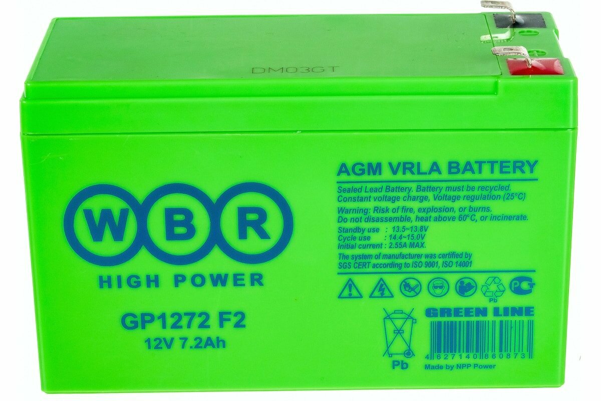Аккумулятор WBR GP 1272 F2 (12В 7.2Ач / 12V 7.2Ah) для ИБП (UPS)/аварийного освещения/видеонаблюдения/сигнализации/систем телекоммуникаций и связи