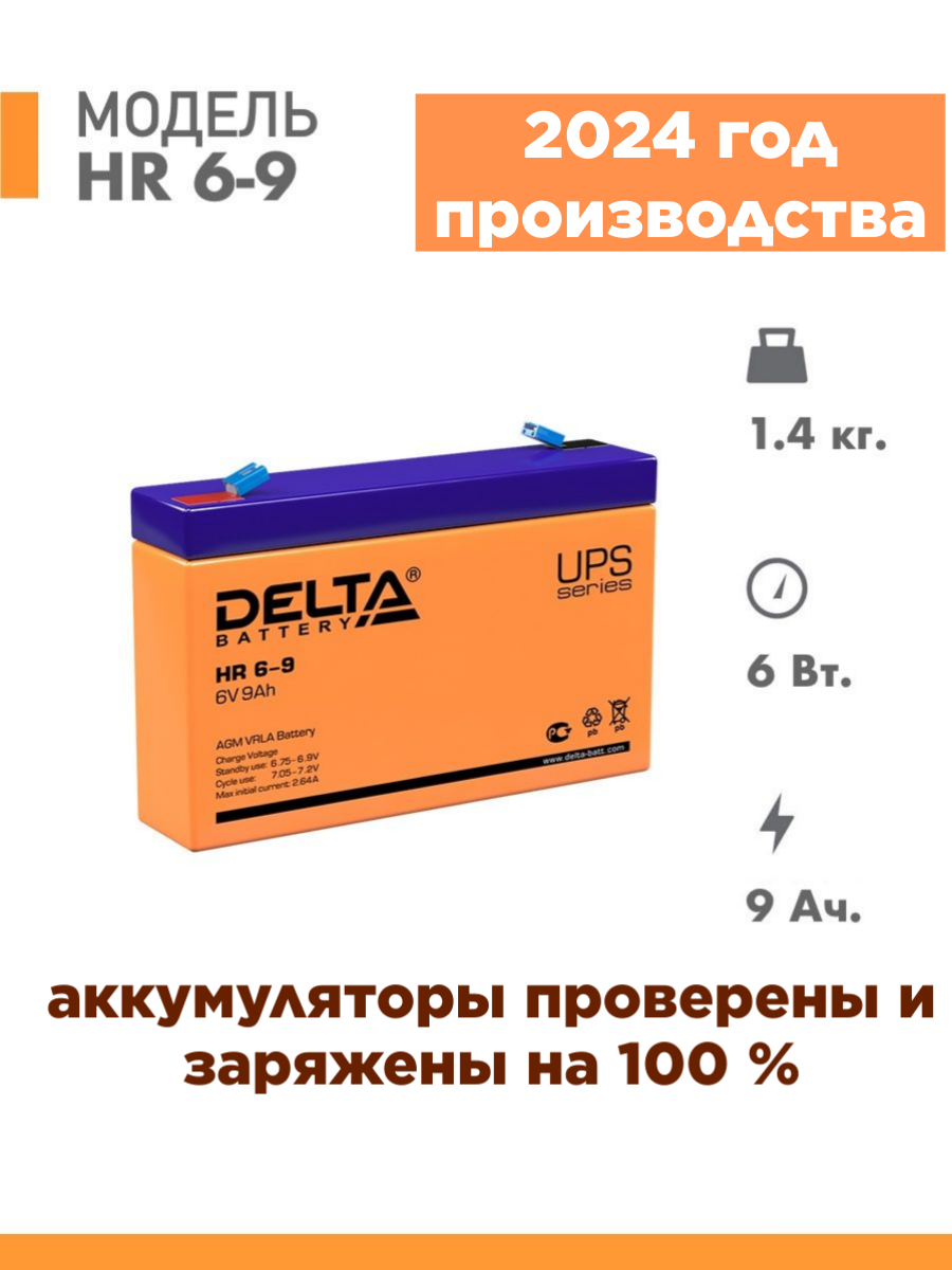 Аккумулятор для детского электромобиля Delta HR 6-9 6V AGM (9 Ач)