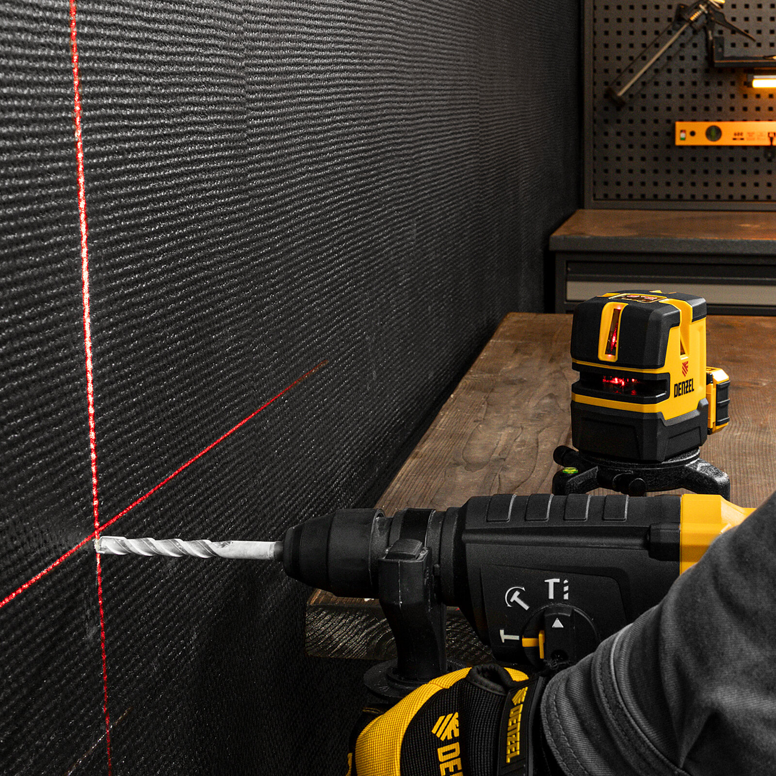 Лазерный уровень LX 05 Red, 20 м, 635 нм, аккумулятор Li 5200 mAh, резьба 5/8" Denzel