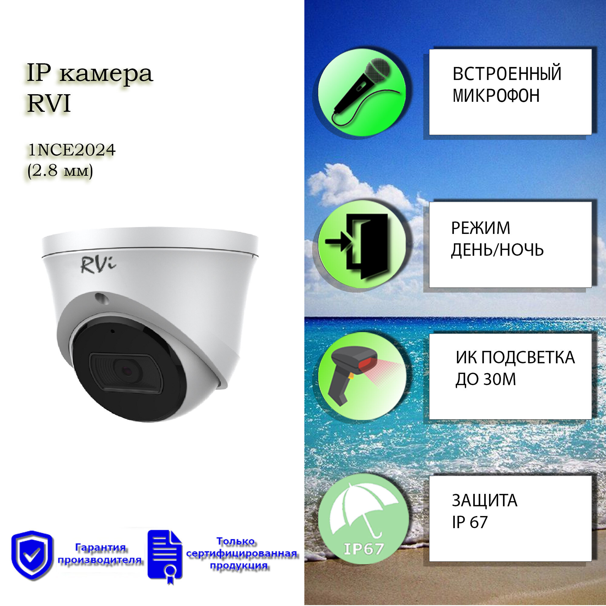 Видеокамера IP купольная RVi-1NCE2024 (2.8) white со встроенным микрофоном интересное: