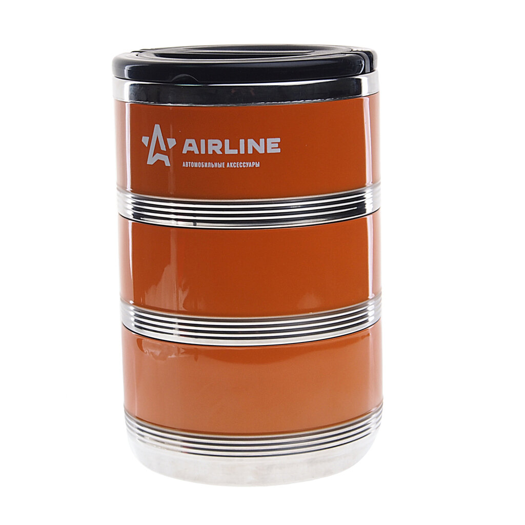 AIRLINE IT-T-03 Термос ланч-бокс для еды с руч.нерж.сталь(304) 3 контейнера, 2,1 л. оранж./черн.