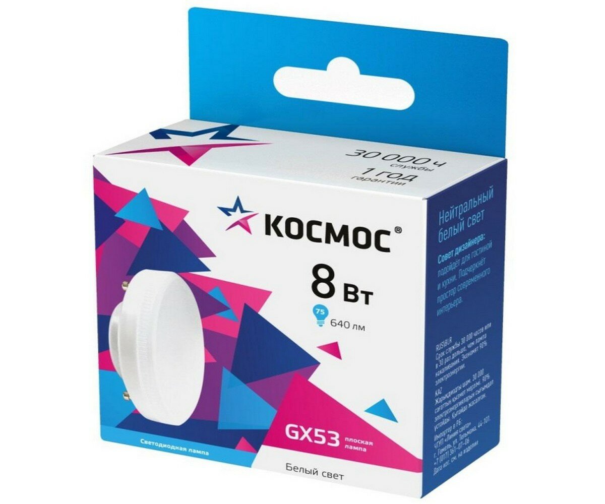 Купить КОСМОС 4500K, GX53, GX53, 8 Вт, 4500 К