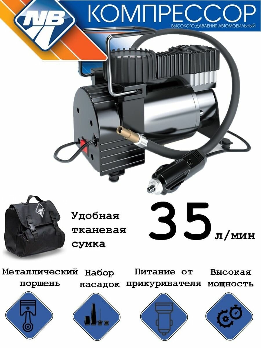 Компрессор "Nova Bright" АК-35, 35 л/мин., 140 PSI, 12В, металлический корпус, в сумке
