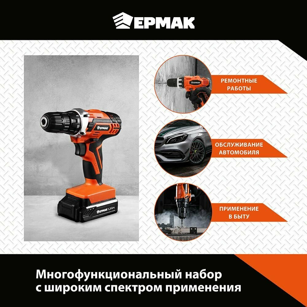 Купить Ермак Набор инструментов "Профи" + шуруповерт 12В, 45 предметов 691-030