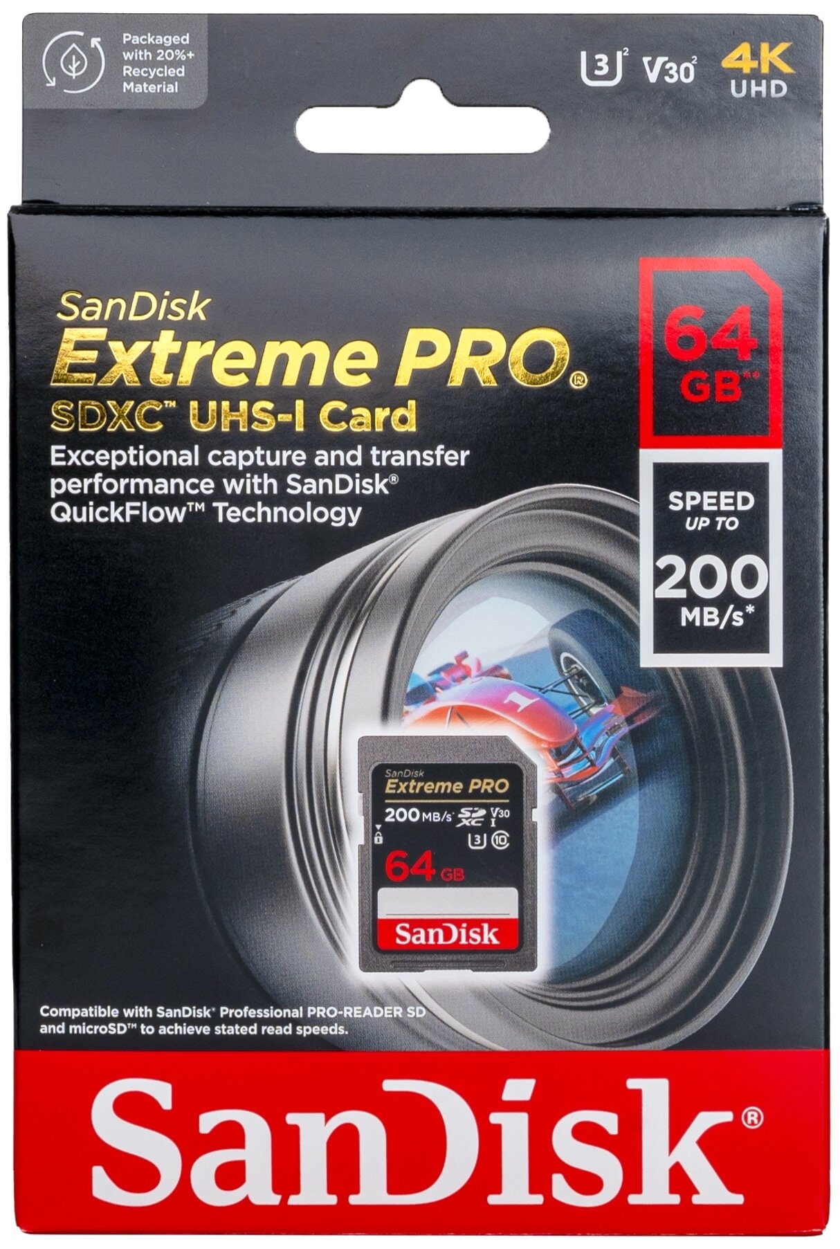 Карта памяти SanDisk SDXC Extreme Pro Class 10 UHS-I V30 U3 (200/90MB/s) 64GB