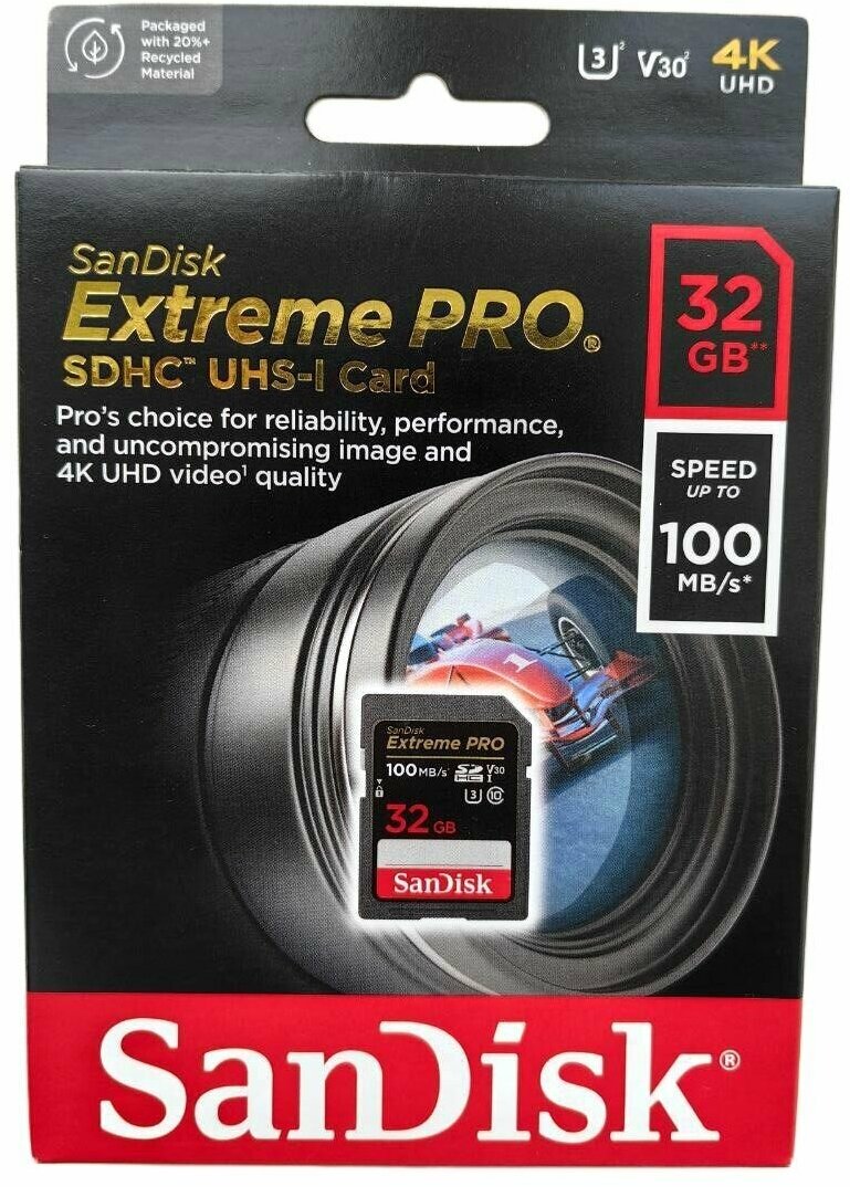 Карта памяти SanDisk Extreme Pro SD UHSI 32GB 4K Video DSLR Mirrorless Cameras 100Mb/s 90Mb/s. Цвет: черный
