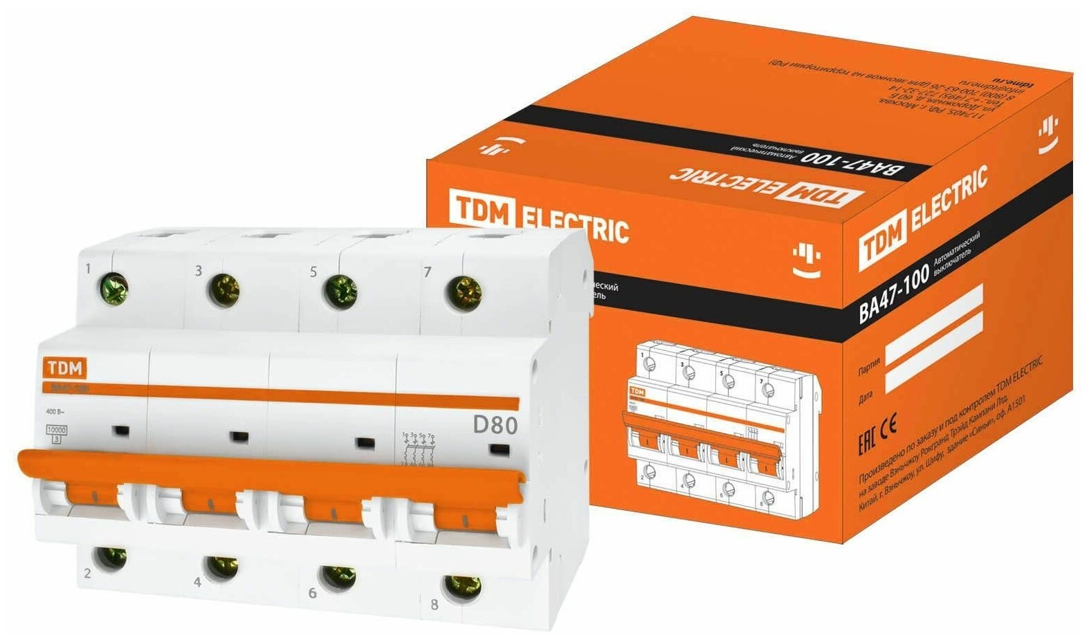 Купить Автоматический выключатель ВА47-100 4Р 80А 10кА х-ка D TDM (1 шт.)