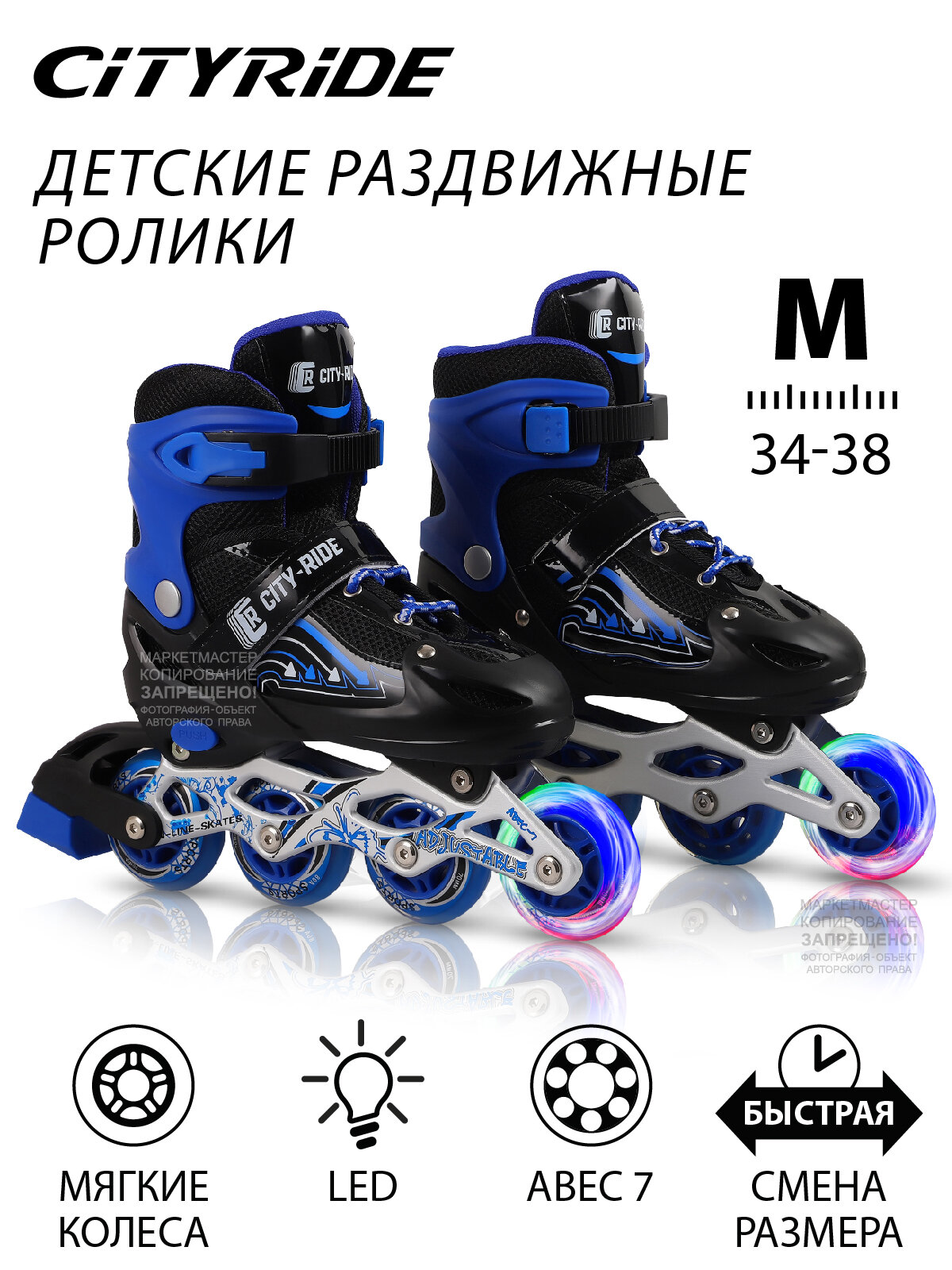 Роликовые коньки детские ТМ CITYRIDE, PU колеса, первое колесо светится, подшипники ABEC 7, размер М (34-38), раздвижные, JB0206354 интересное: