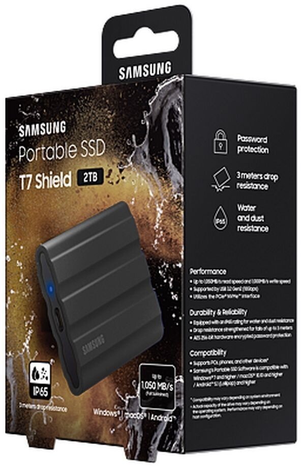1 ТБ Внешний SSD Samsung T7 Shield, USB 3.2 Gen 2 Type-C, black (MU-PE1T0S/WW)