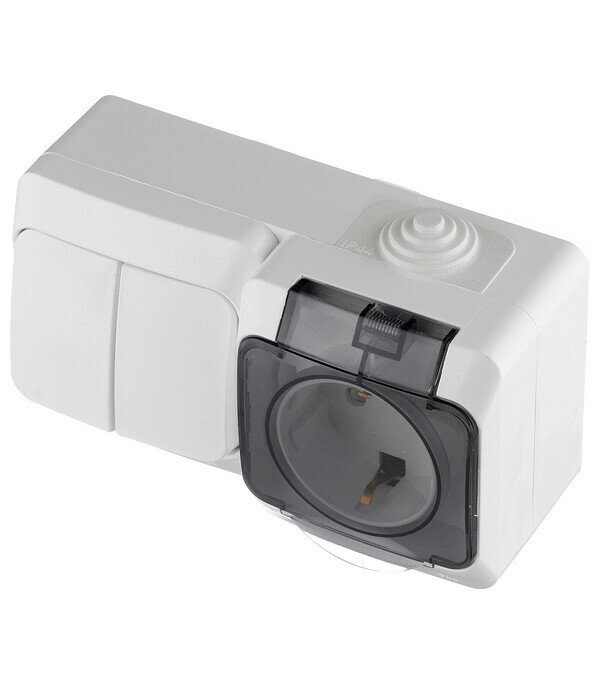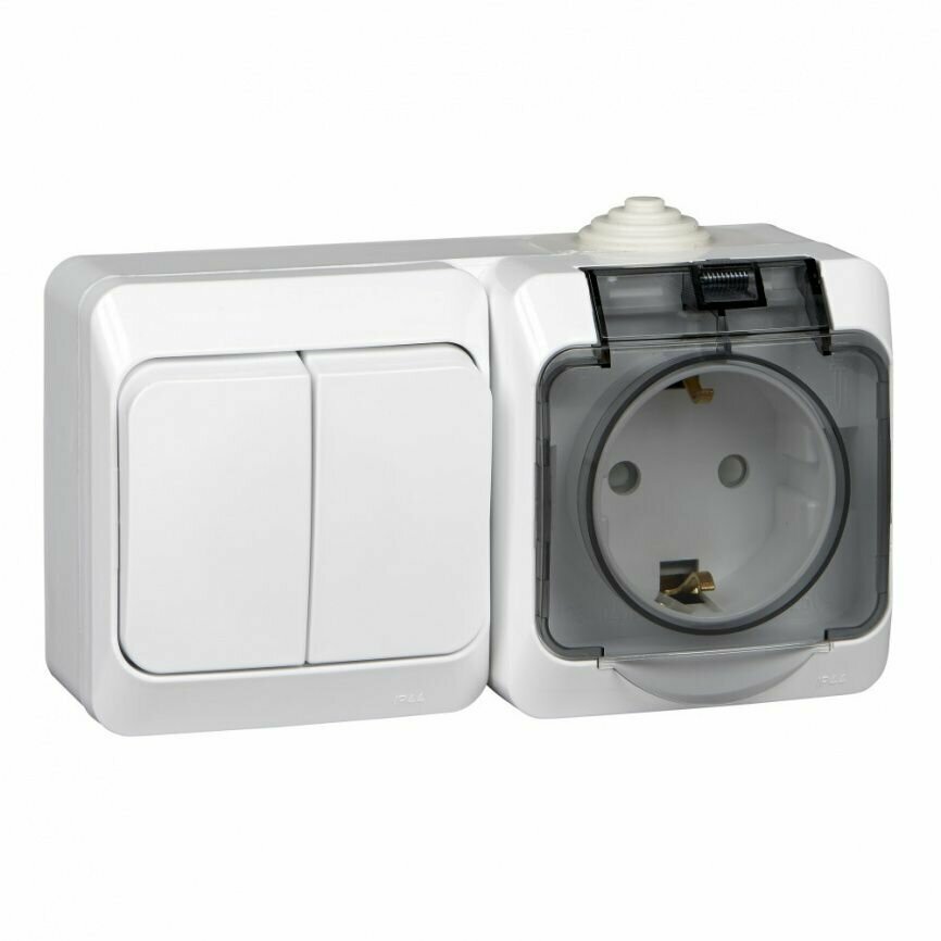 Этюд О/У Белый Блок: Розетка с/з со шт. + Выключатель 2-кл. IP44