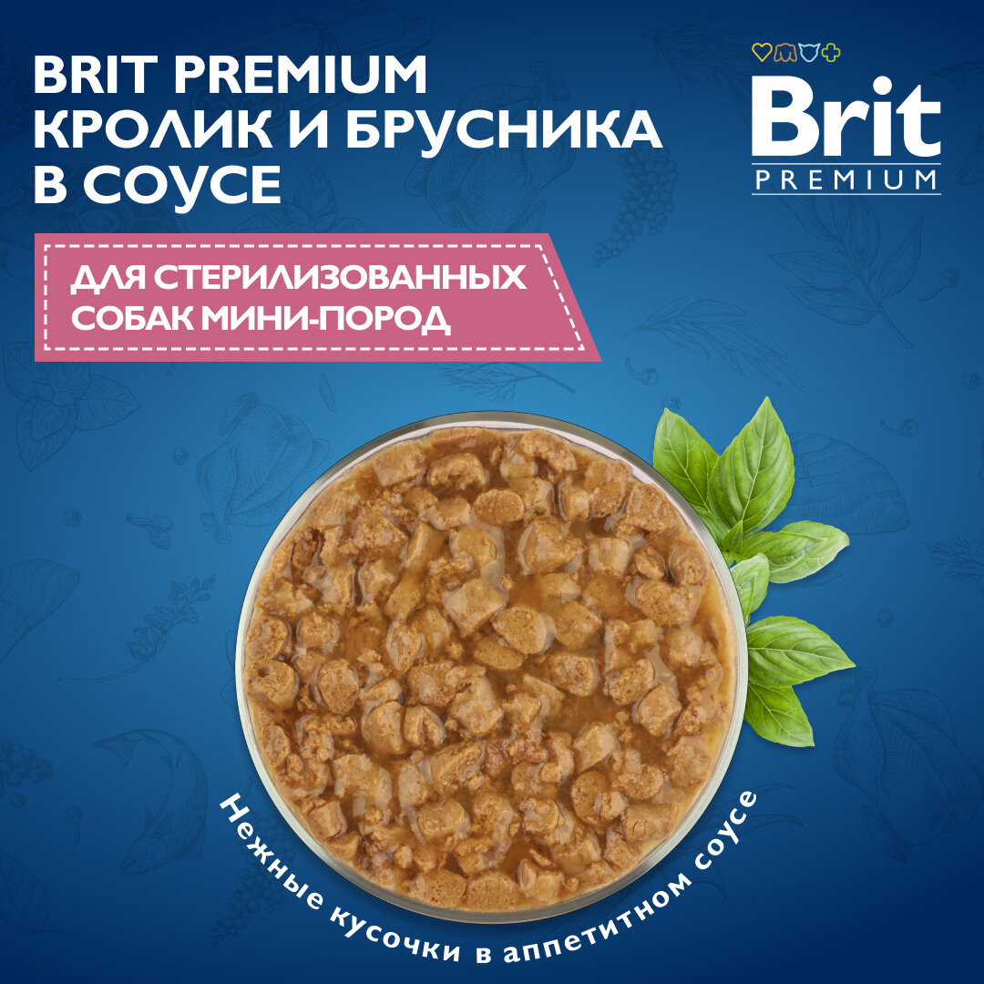 Влажный корм для собак Brit Premium для взрослых стерилизованных собак мини пород кролик и брусника в соусе, пауч 1 уп. х 14 шт. х 85 г (для мелких пород)
