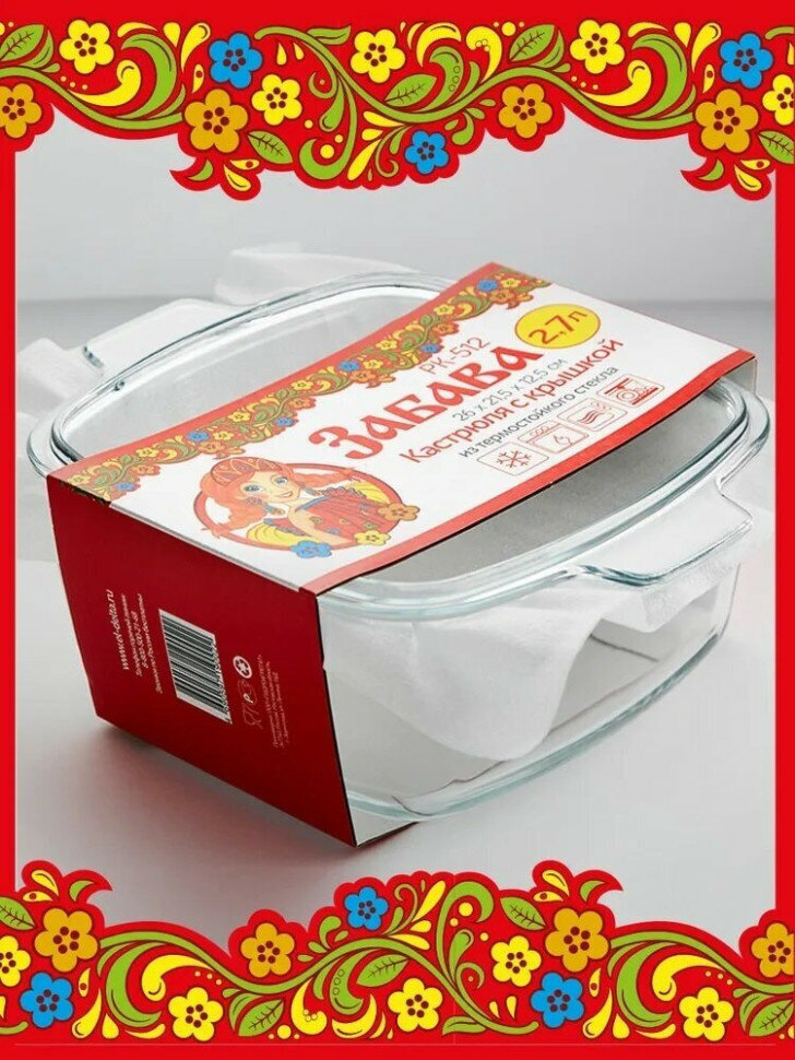 РК-512 Квадрат кастрюля с крышкой стекло 2,7л забава